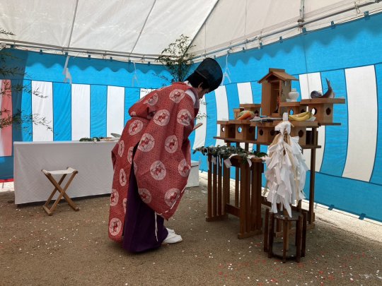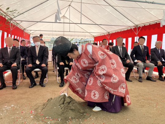 ※下記掲載写真は、4月4日の地鎮祭の様子です。